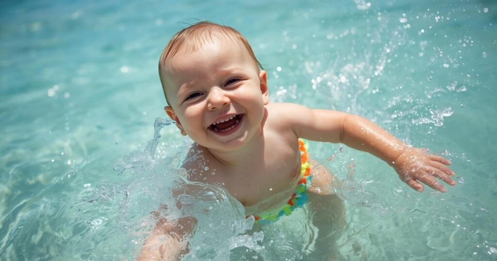 Instagram captions for baby swimming should be playful and cute, highlighting your little one’s fun and joyful water moments.